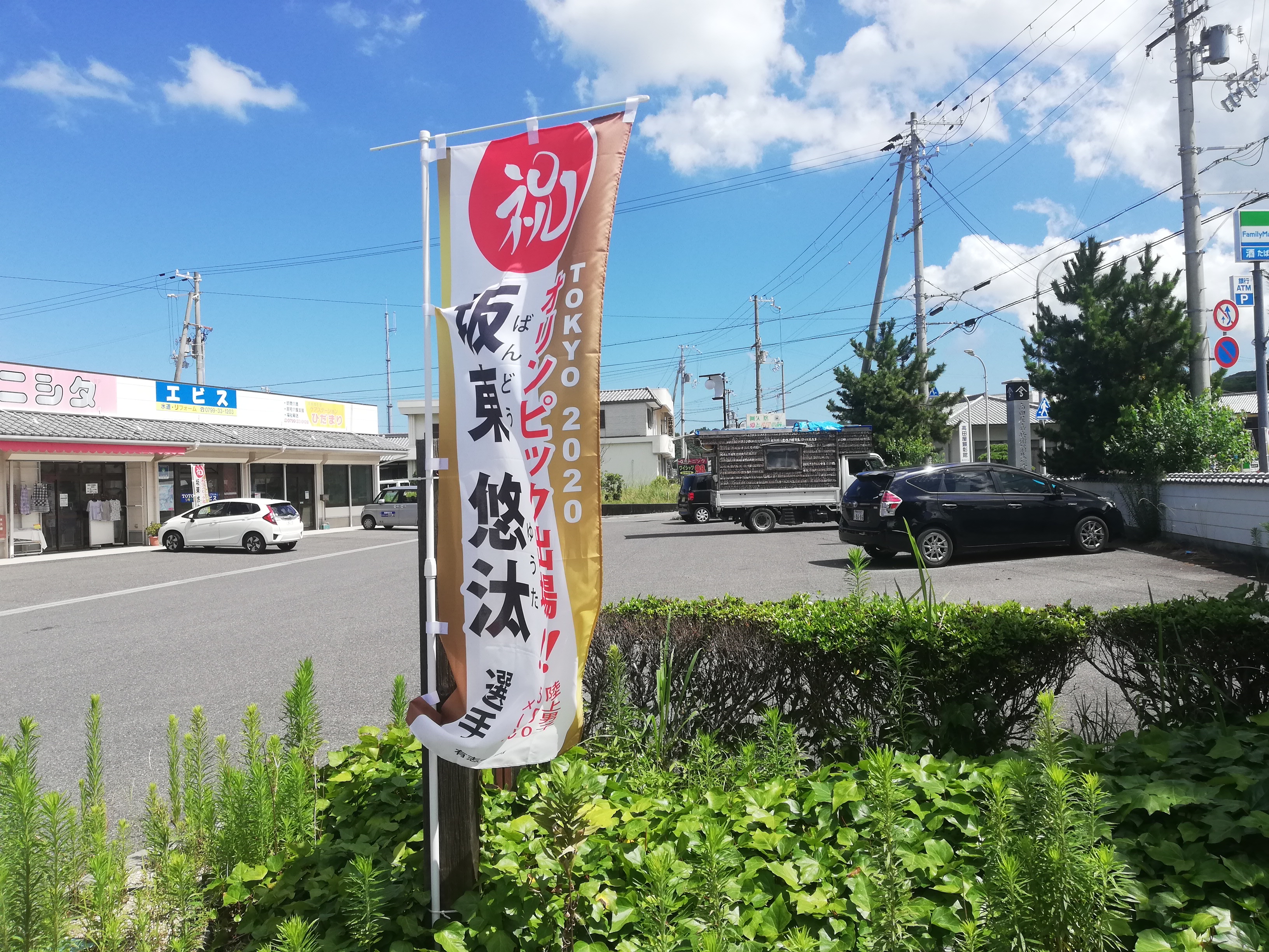 そして、その辺いたるところに「祝・オリンピック出場」の旗がなびいてます。