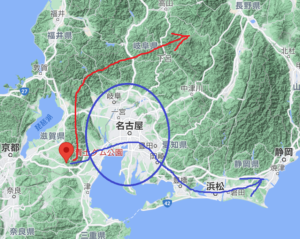 さて、名古屋という大都市圏を目の前にして、ここからどういうルートを取るのか。