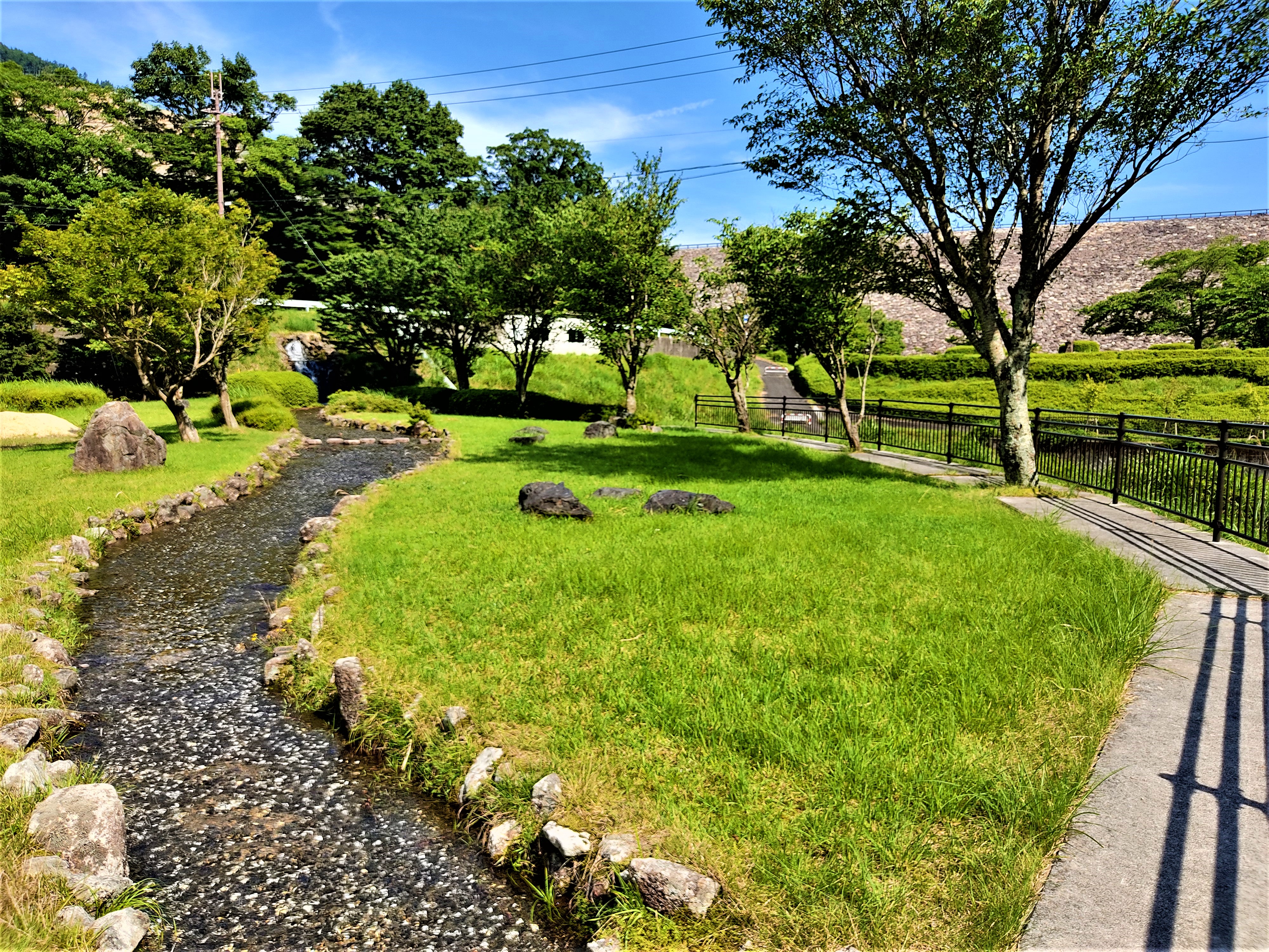 ダム湖の下は公園になっていてダムから流れ出してくる小川が流れています。