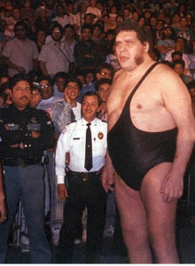 アンドレ・ザ・ジャイアント(223㎝)の肩に