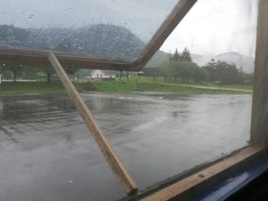ただ、時折突風が吹き付けてきて雨が窓から吹き込んできます。