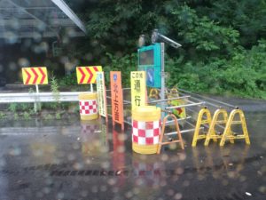 自動車道へ迂回指示が出てるので、昨日来た道を戻ると