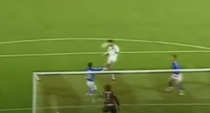 ロナウジーニョの全盛期、ロカベルとの左ラインからの完璧な攻め。カフーがドリブルでオーバーラップ、中にいたカカの足元にドンピシャのパス。