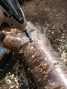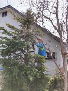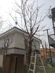 木に登って電動ノコでウイイーンと切っていくのですが、