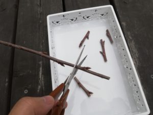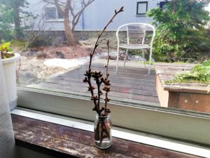 後は、妻が枝先を切って水を入れた瓶に差して窓辺に置いたのですが、
