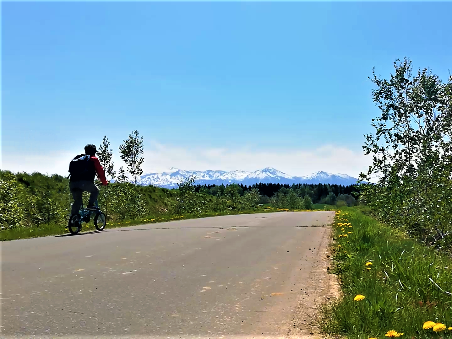 大雪の山々を眺めながらゆっくりと走っていきます。