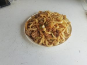 昼は焼きうどんを食べ、