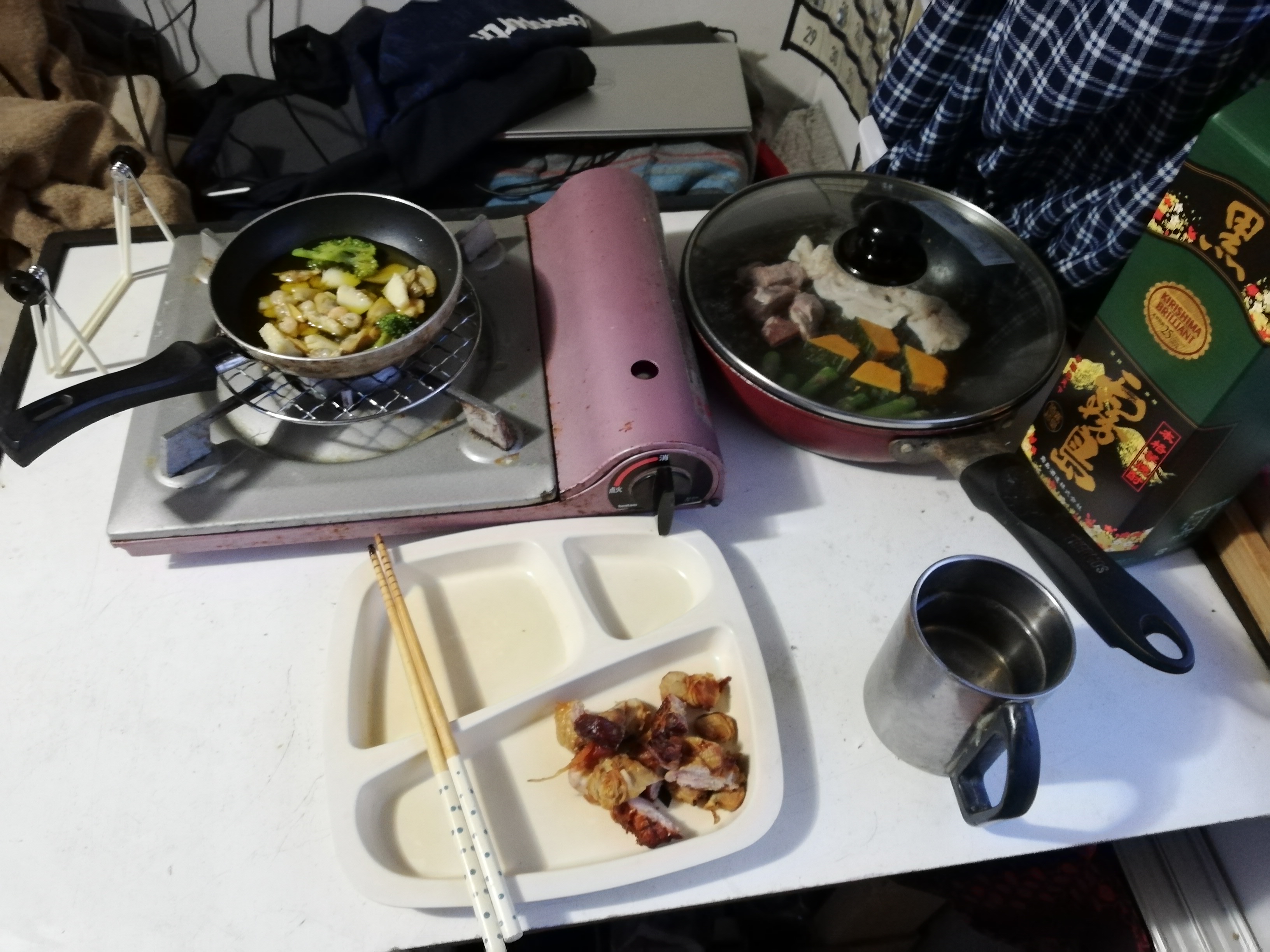 朝4時に起きて7時半の朝食まで腹が持たないのですよ。
