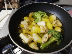 アヒージョはダイソーのミニフライパンで食べます。