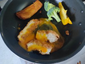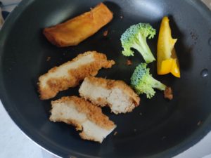 今までは食べる分すべての食材をどーんとフライパンの中に投入していたのですが、