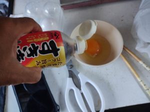 生卵にすき焼きの素を入れてぐじゅぐじゅとかき回して