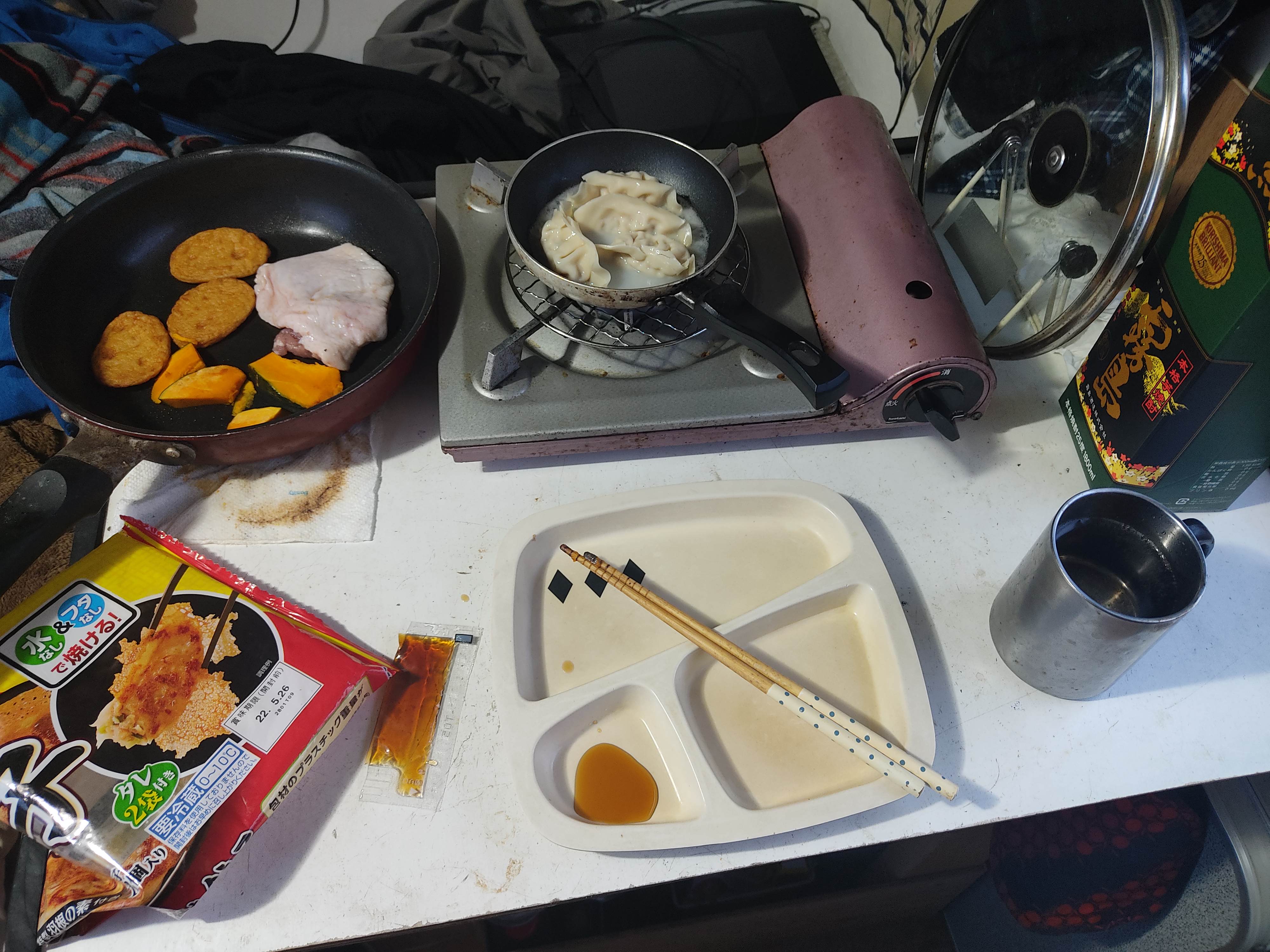 例えば、餃子と肉は焼きあがる時間も違うし無理があったのです。