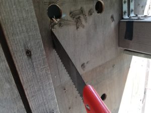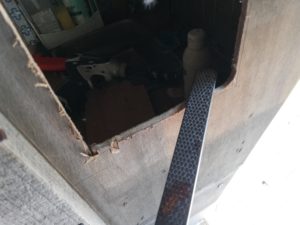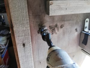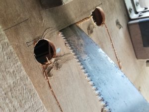普通の車だとこんなことはできないけど、自作車だったら旅先でも穴なんて簡単に開けちゃうのです。