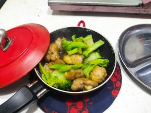 鶏肉とブロッコリーのオイルソース炒めを作り