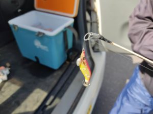 釣りが終わったようで片づけをしてます。