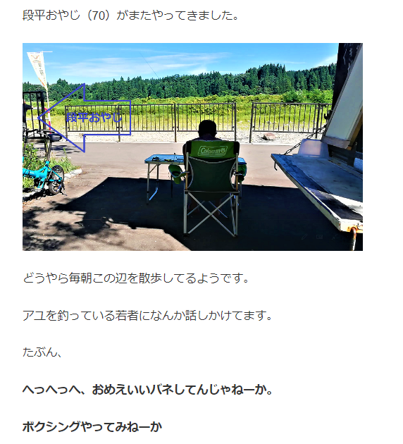 去年の夏に段平おやじと会った山形のアユパーク以来ですね。