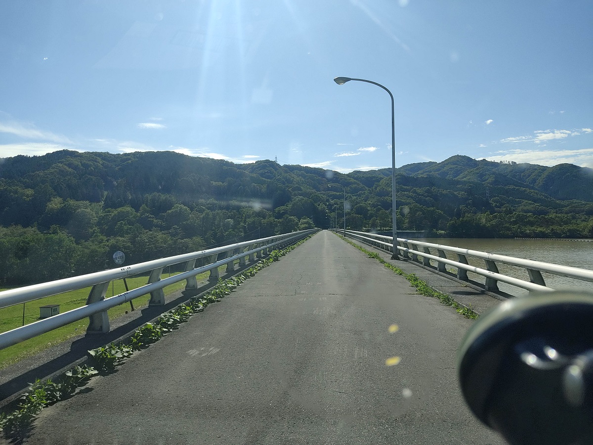 ダム湖から落ちる水の音と、セミの声が元気に聞こえてきます。