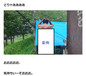 あれですよ、豪雨の中でカラダ洗ってるやつ。