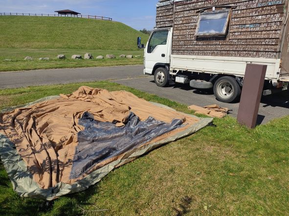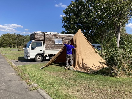 庭はともかく、来夏の知床の「青の居酒屋」新装開店に向けていいテントはないか