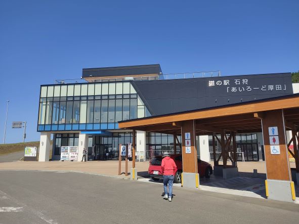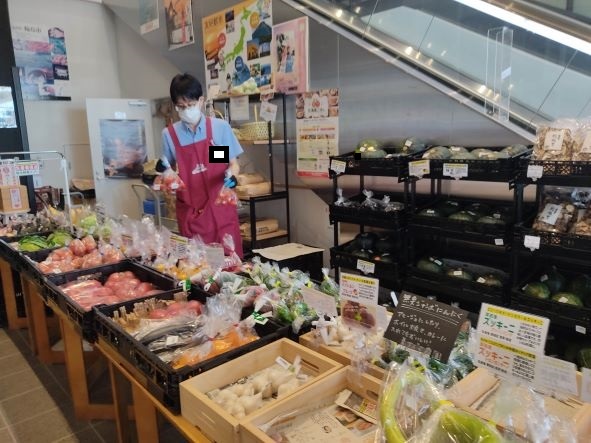 記事中画像のあいろーど厚田売店の中のエプロン着けた職員、ウチの息子だよ。