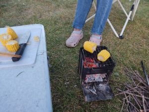 雨が落ちて来たのでしばらく傘をさしながら飲んでいたものの、耐えきれなくなって家の中に避難し、
