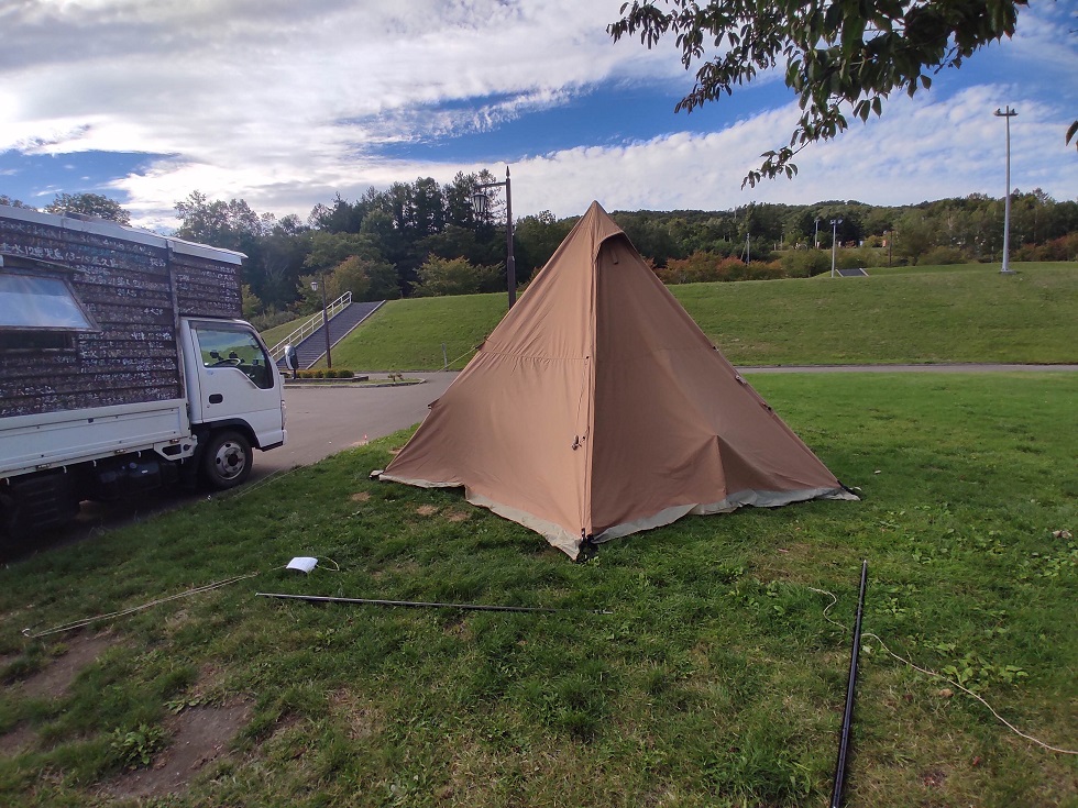 この1本ポールテントだと一人で簡単に建てることができるのです。