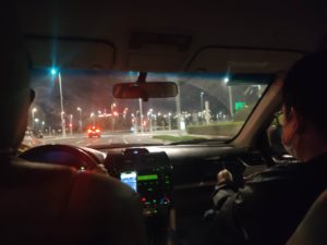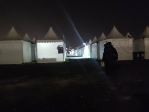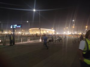 深夜のドーハの街中を走りファンビレッジに向かいます。