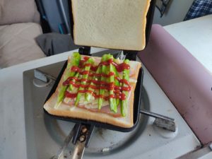久々に登場のホットサンドメーカーで昼食を作って食べ、