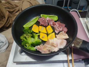 青の3号特製フライパン料理です。