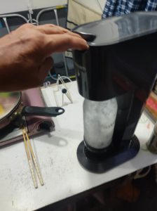 あっという間に炭酸水の出来上がりです(右側にカセットボンベが入っている)。