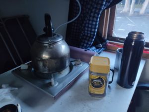 熱いコーヒーを飲みながらしばしベッドの上でくつろぎ、