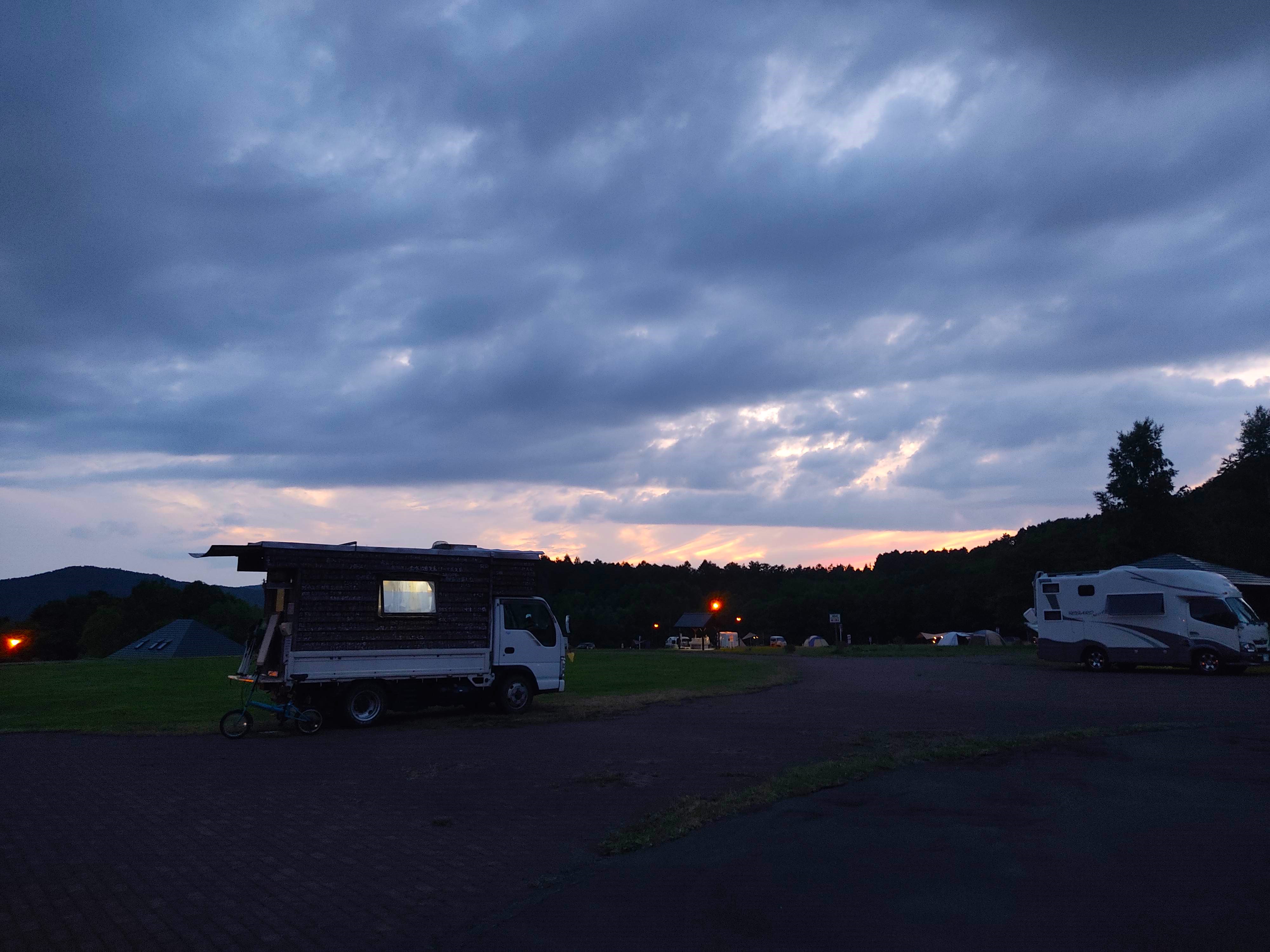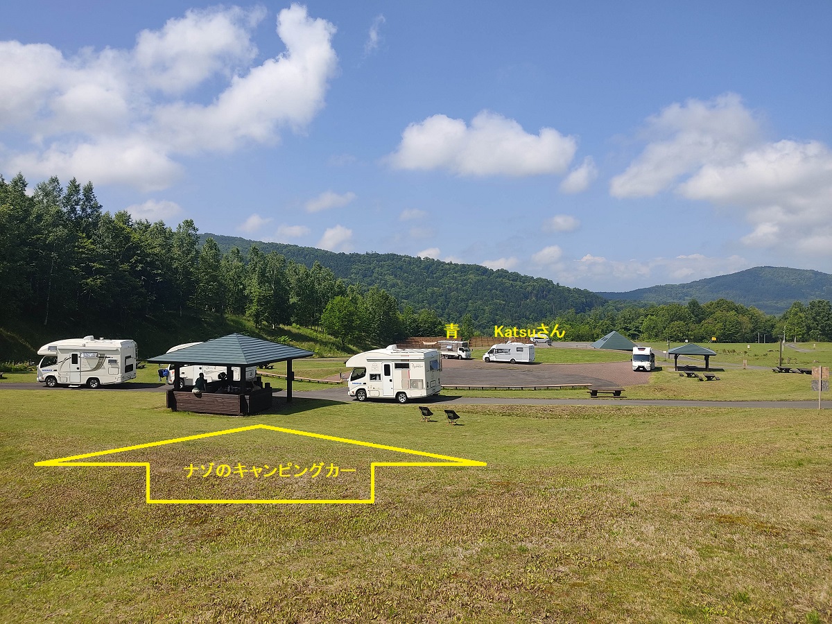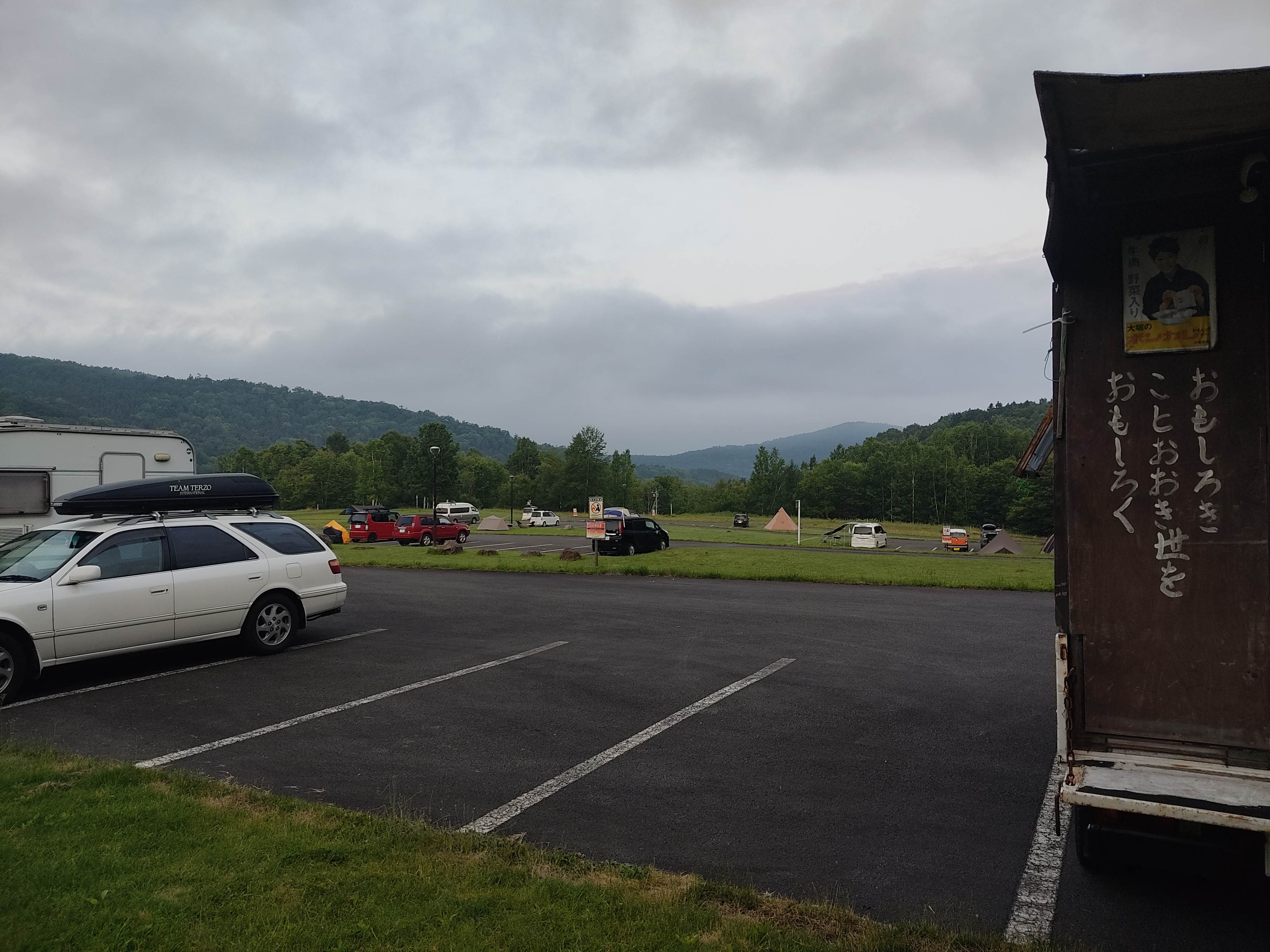 坂を上っていくと、「札幌わ」ナンバーの(←レンタカーですね)キャンピングカーが3台並んでいて、