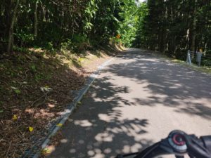キャンプサイトを出て、緩い坂を周りの茂みに気を配りながら