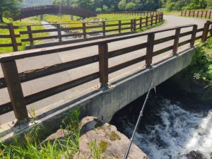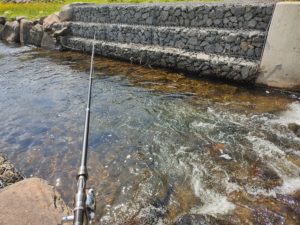 おそらく日差しを避けて橋の下にわんさかとニジマスがたむろしてると思います。
