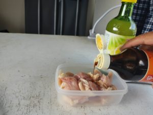 鶏肉をポッカレモンとベル食品の成吉思汗のタレに浸け