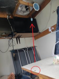 蓋を開けてにゅるにゅると粘着テープを取り出して天井に貼るだけ。