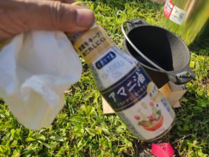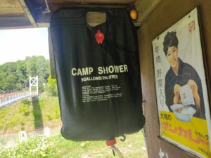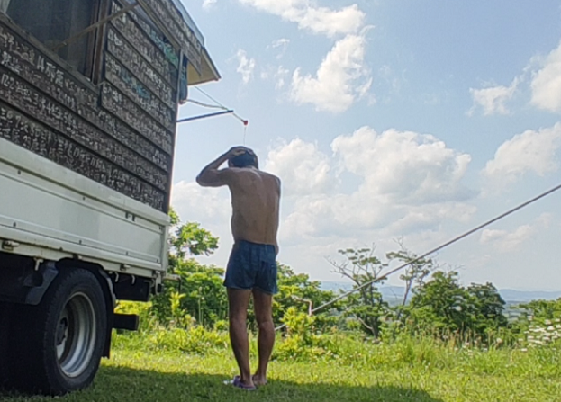ホントは全裸でやりたいのですが、向こうにキャンパーが一組いるのですよ。