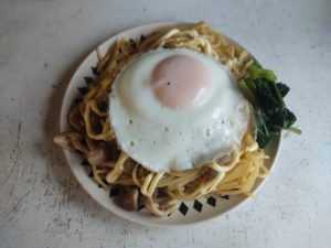 目玉焼きを乗せればワンパンパスタの出来上がりです。