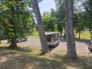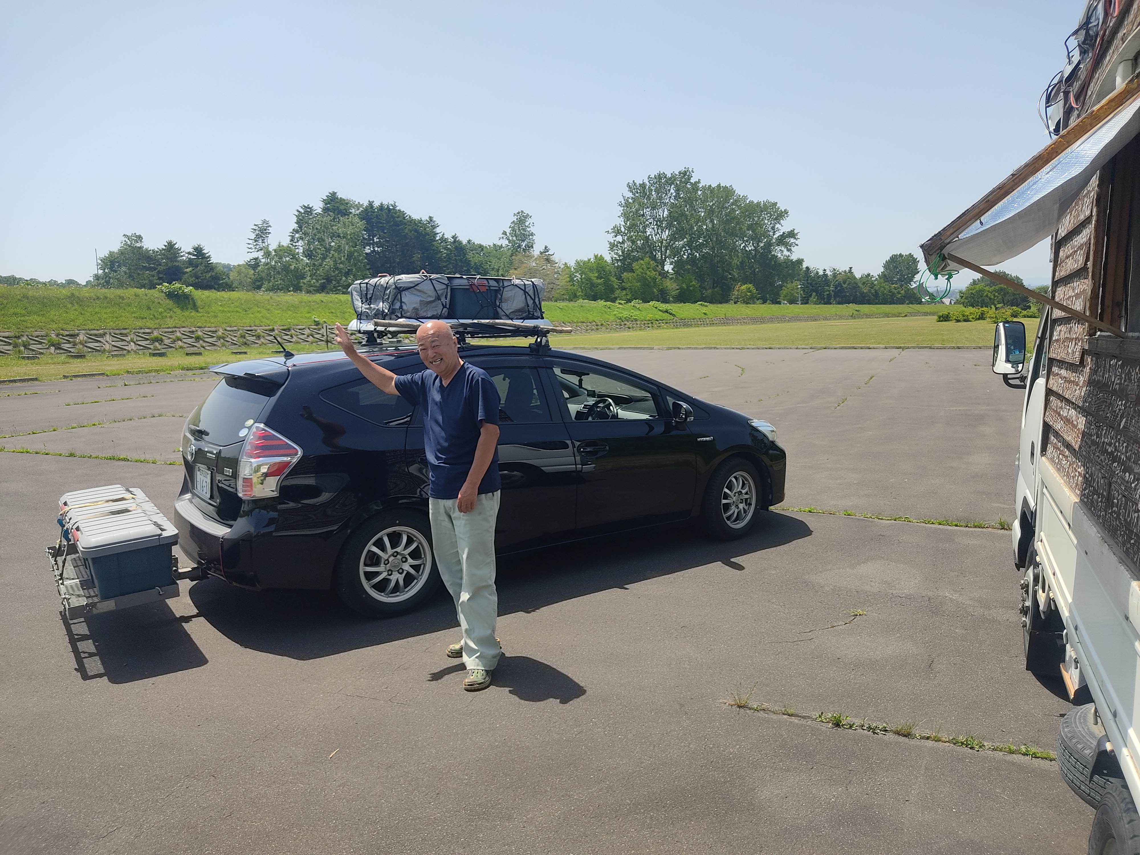 キャンプ場で知り合いと待ち合わせをしているのだそうですが、本間さんもこの場所が好きで、さっきまでここに停まっていたのだそうです。