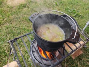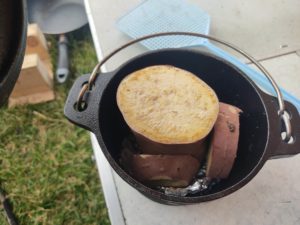 午後は、この間焼いたさつまいもの残りをダッチオーブンで焼き芋にします。