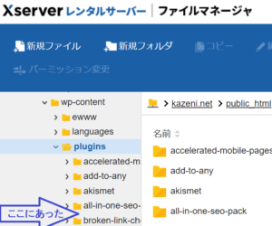 なんと、サーバーの中にプラグインのフォルダーが入っていることがわかったのです。