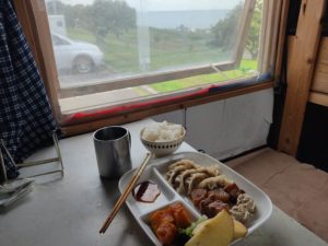 窓の外には遠別の灯が見えます。