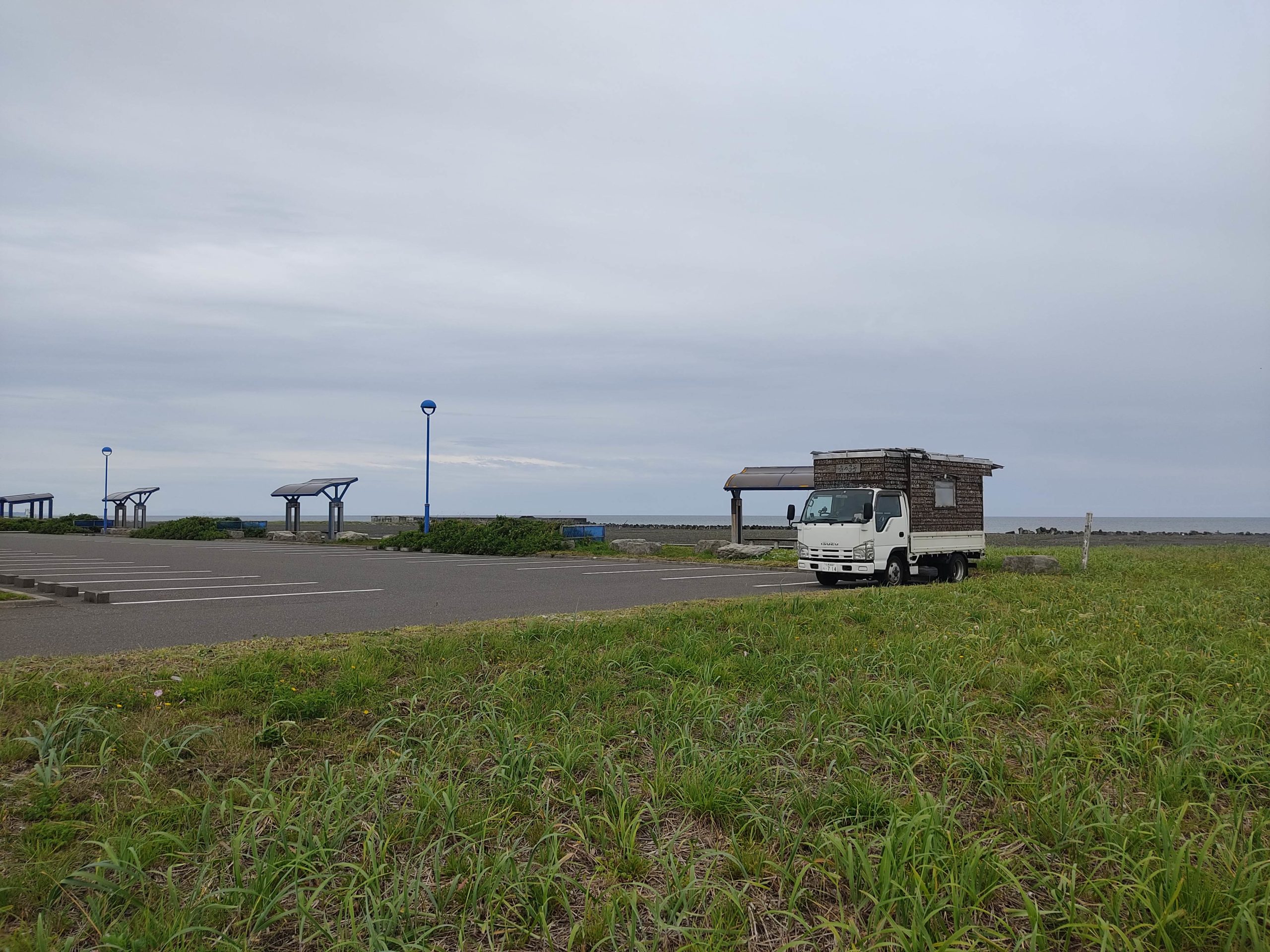去年の秋に見つけた車中泊場所の、みなくるびーちに到着です。