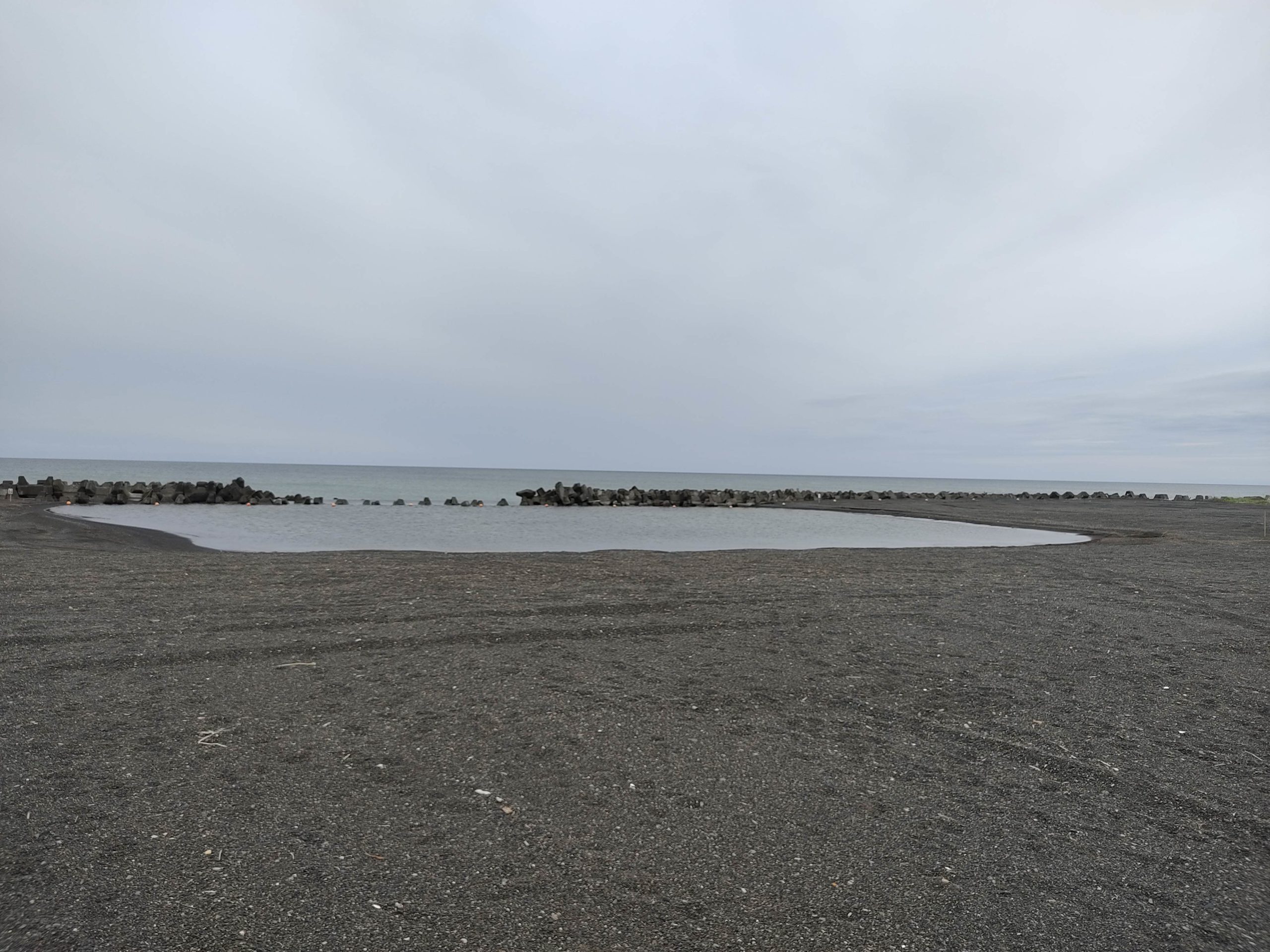 雲って暗いせいなのか、寂しい北国のビーチです。