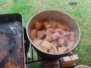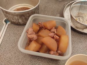 1号のダイコンの方は20分茹でて、鶏肉を加えて