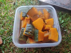 ほうれん草の次はかぼちゃの煮物を作ります。