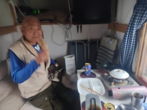 すると、キャンプ場から眼下の稚内港を見下ろしていた亜矢ちゃんおとうさんが、