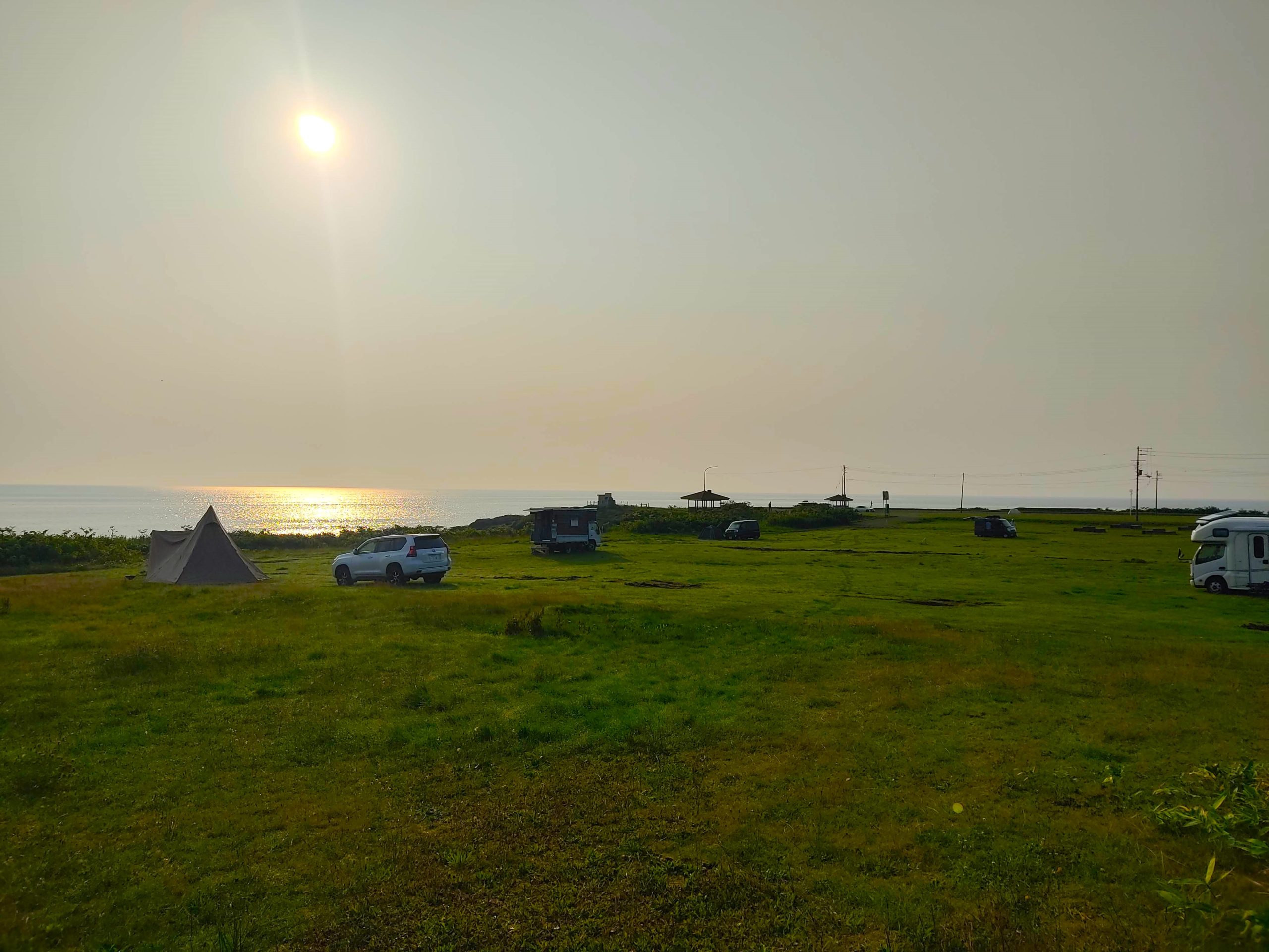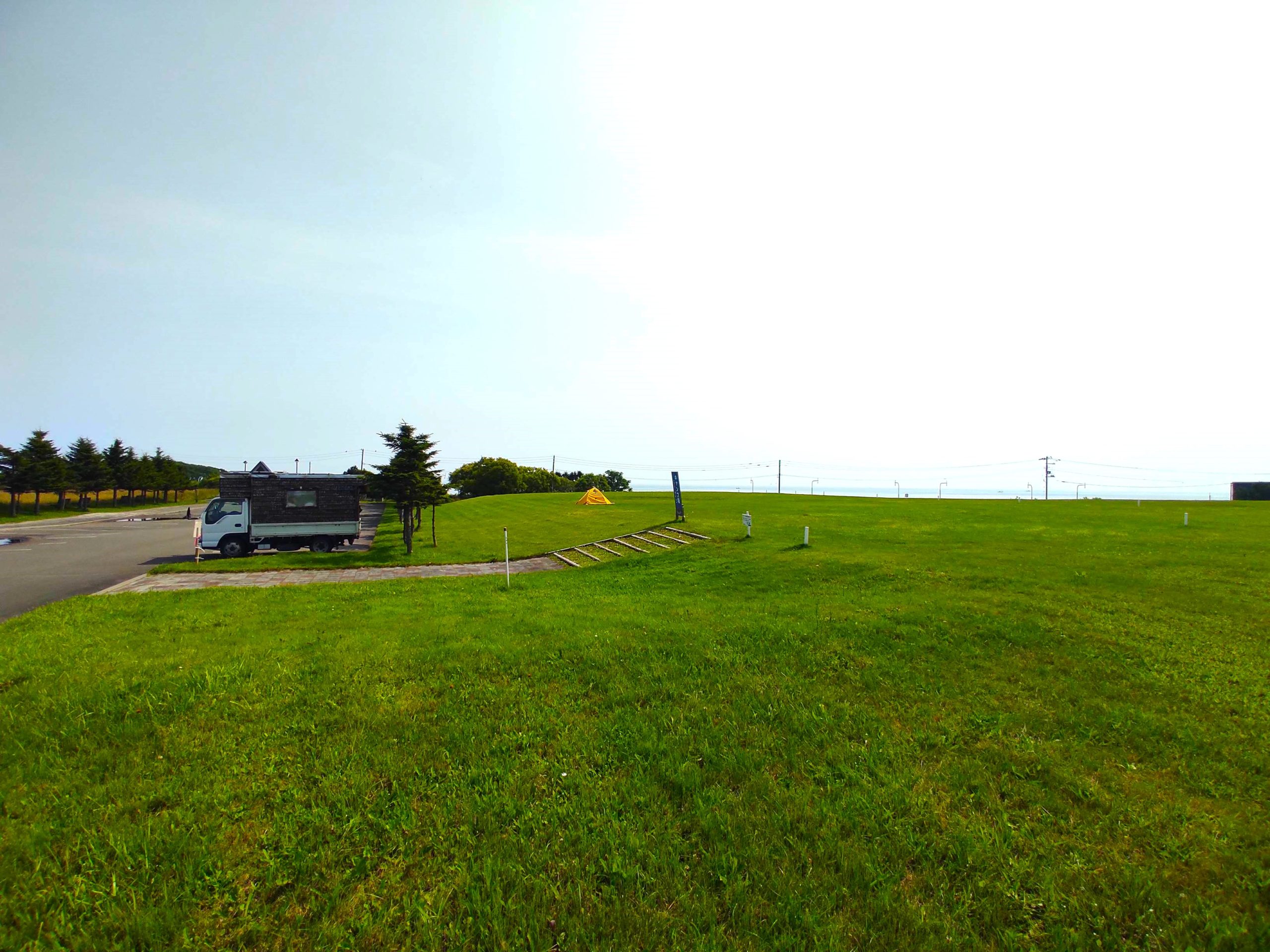 道の駅マリーンアイランド岡島の裏側にあるハマナス交流広場キャンプ場に到着です。