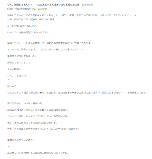 高知県は坂本龍馬や中岡慎太郎らの偉大なオトコたちを出したにもかかわらず、こそこそと、ではなくおおっぴらにガソリンの談合をしているけしかん県なので僕の中ではシカト県なのです。