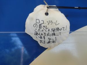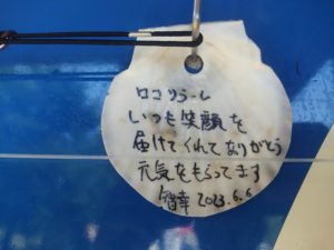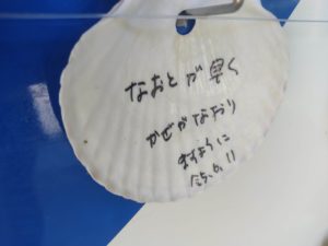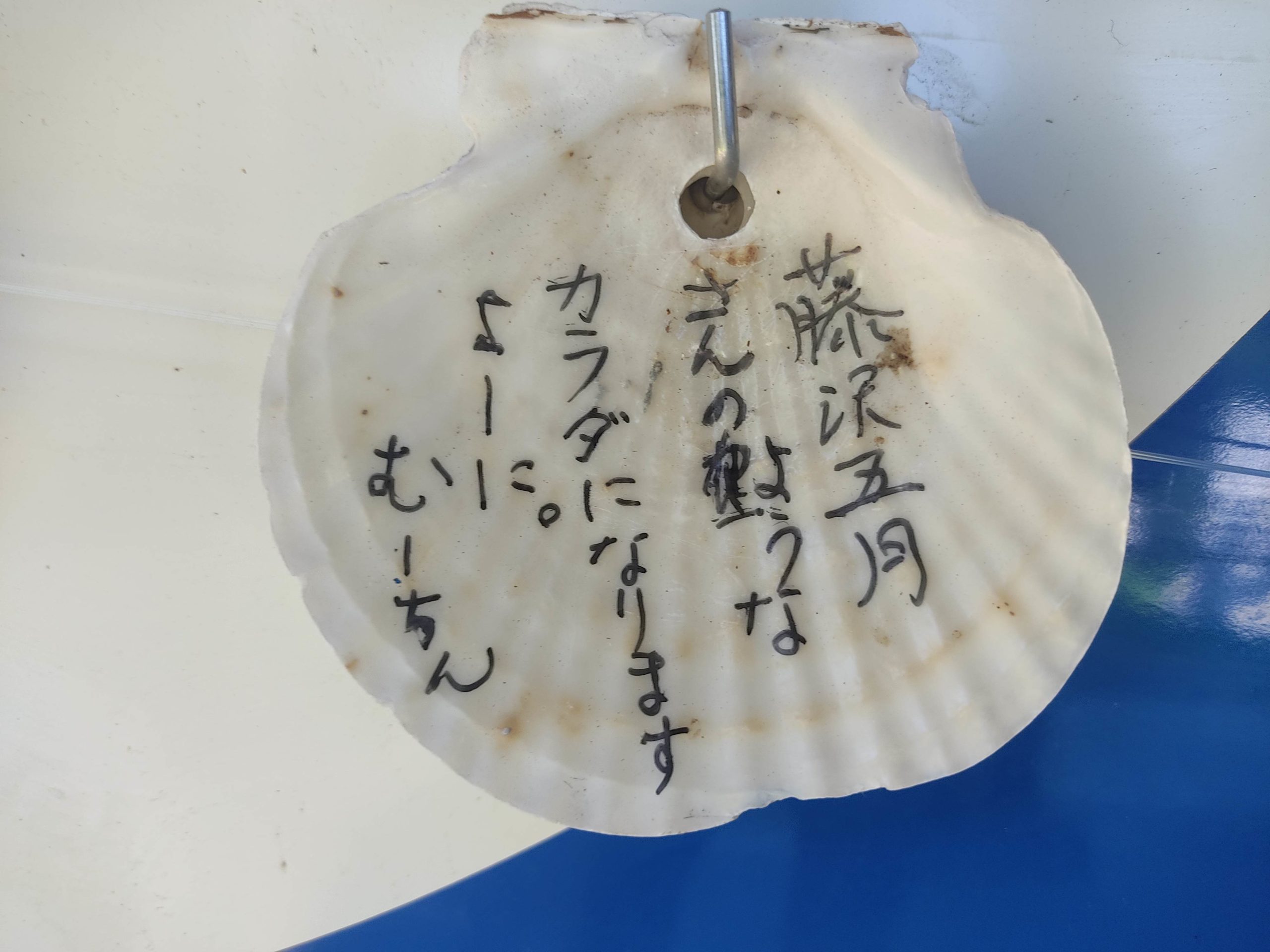 前は絵馬だったのですが、今はホタテの貝殻になってます。